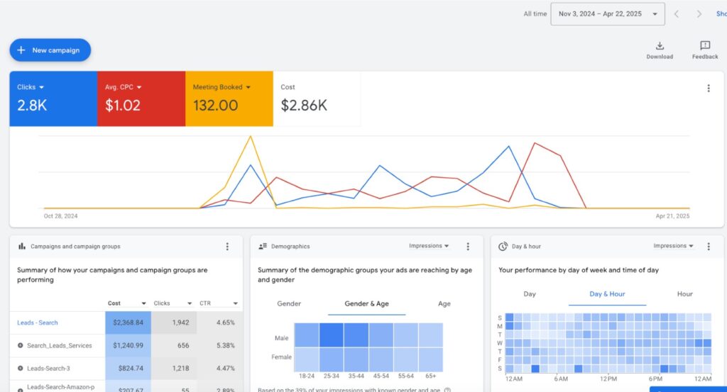 This campaign proved that a targeted, data-driven strategy can turn ad spend into real growth. With 132 booked meetings at just $21.60 each, the client achieved sustainable lead generation. The results highlight how Google Ads can be a game-changer for construction services.
